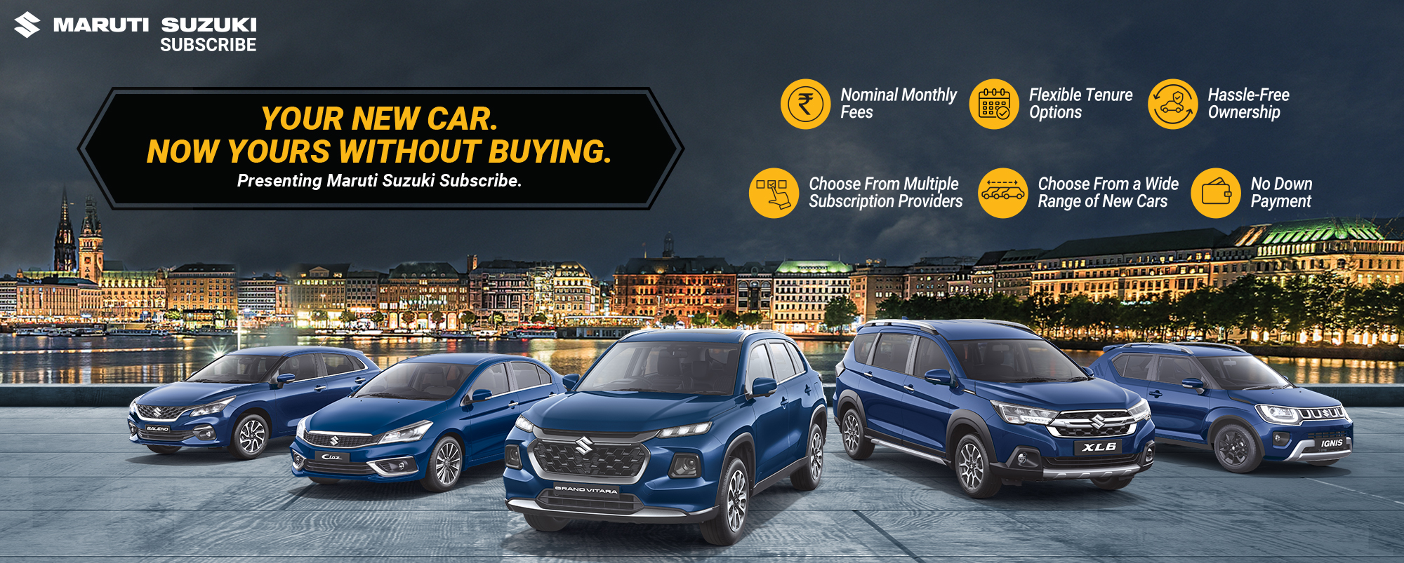 Maruti Suzuki Subscribe enables all customers to enjoy driving their preferred Maruti Suzuki cars without having to deal with all the financial responsibilities that come with owning a car.All you need to do is opt for a monthly subscription plan at a fixed monthly fee, which includes the routine maintenance and insurance costs, and choose a flexible tenure. At Seva Automotive in, Wardha, Nalwadi, all Hatchback, Sedan, SUV, the MUV models line-up includes Baleno, Invicto, EVitara, Jimny, Ciaz, Ignis, Fronx, Grand Vitara, XL6. Here, you will enjoy Maruti Suzuki Subscribe benefits such as: